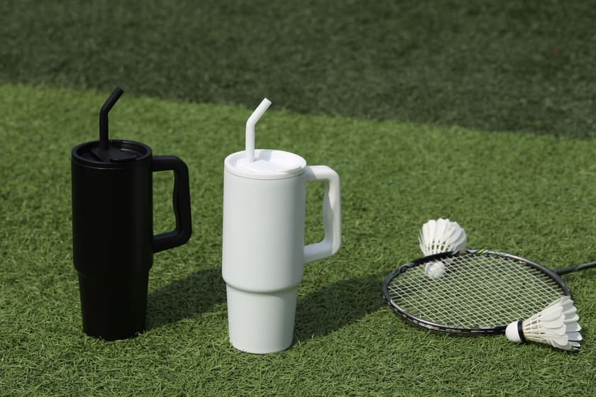 Other Details: The Bern tumbler is crafted with 70% GRS-certified recycled stainless steel and comes with a reusable metal straw and rotating lid cap. Designed to keep drinks hot for up to 5 hours and cold for up to 15 hours, it’s ideal for travel, workouts or daily hydration. Ergonomic handle and a narrow base allow easy grip and compatibility with car cup holders. Packaged in a kraft gift box—premium, eco-friendly, and built for sustainability.