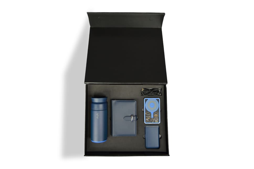 - The Business Travel Gift Set is a sophisticated, blue-themed collection designed for the modern professional on the go.