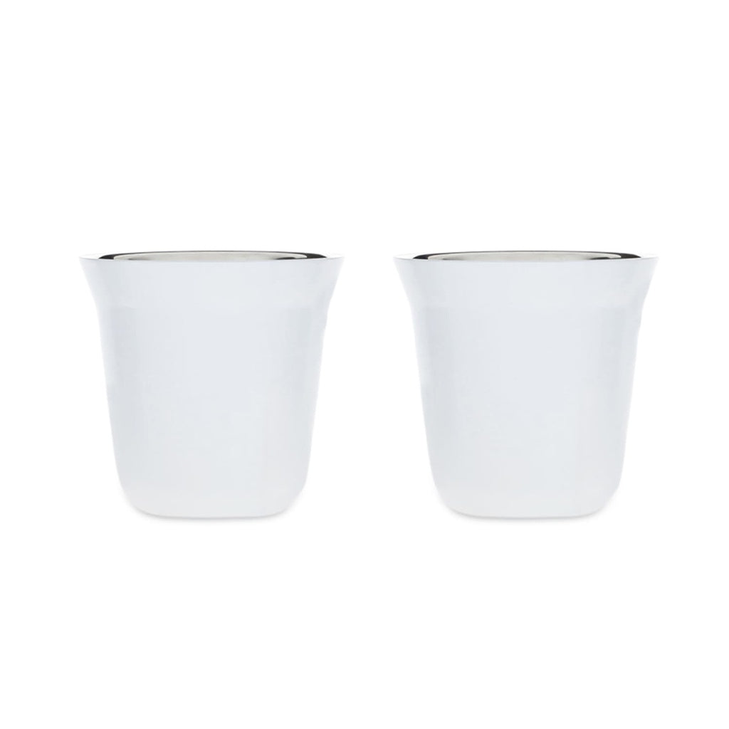 - The set includes one large **400ml stainless steel bottle** and two compact **80ml mirror-polished coffee cups**.