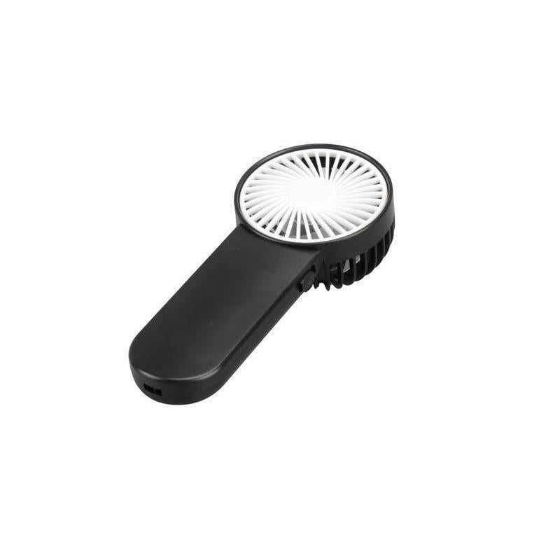 - A versatile, small portable fan that can be used as a handheld device or placed on a desk using its additional stand.