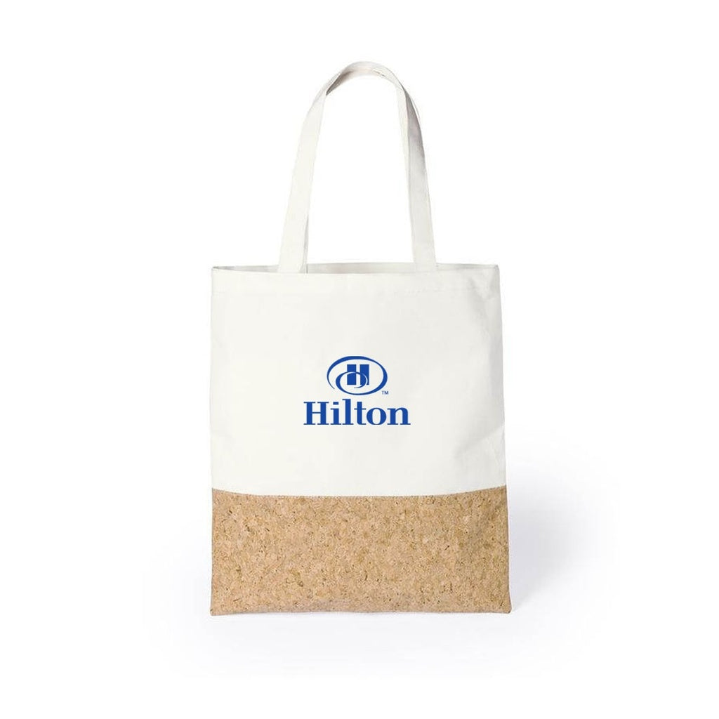 Other Details: Sturdy shopping bag crafted with 145 GSM recycled cotton and natural cork accents that lend a refined, eco-friendly look. The spacious 35 x 40 cm size balances usability and sustainability, suitable for daily errands or branded promotions. Natural tones with cork details offer a sophisticated canvas for logos, making a strong impression without sacrificing aesthetics.